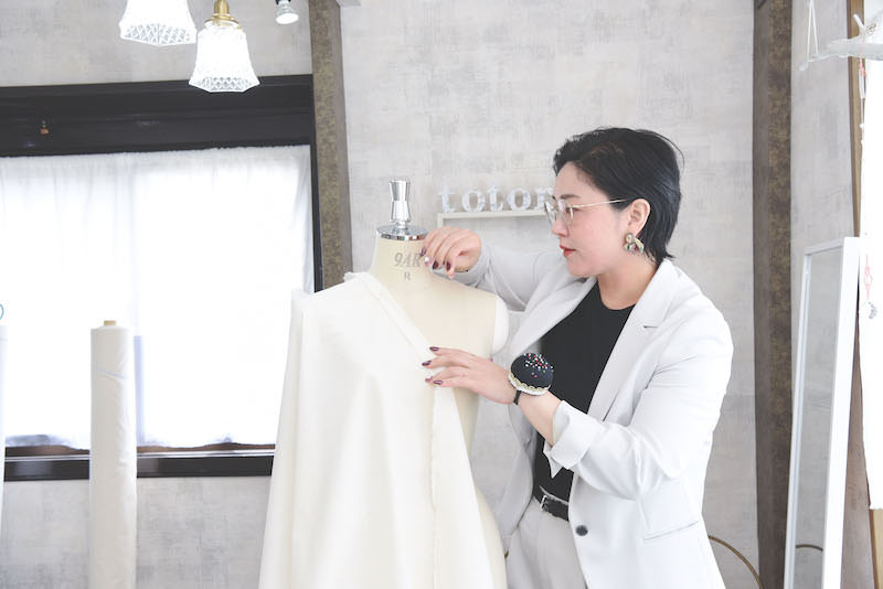 以前から少しずつ小物や服を作っていましたが、ハサミを使うときの注意点や、端の始末の様な細かなところの基礎が身についていないなと感じていました。そういったことは市販の型紙やデザインの服には載っていないし、どう勉強したら良いか悩んでいた時に知って受講し始めました。先生はポイントを抑えて説明して下さるし、何度同じことを聞いても丁寧に答えていただけるので、とても教わりやすいです。基本みなさん作業に集中してますが、ひと段落した時には世間話なんかも出て、楽しい雰囲気です。最終的に作家を目指したい方向けにも講座があるので、一から目指したい方にも良い教室だと思います。